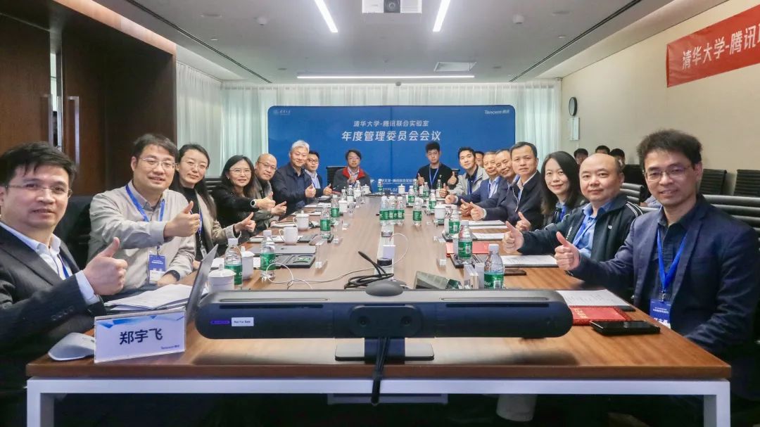 清华大学-腾讯联合实验室年度管理委员会会议及总结会近期在深圳腾讯滨海大厦隆重举行。联合实验室顾问委员、中国工程院张尧学院士和中国科学院毛军发院士,管理委员会主任、清华大学副校长杨斌教授,副主任、腾讯技术管理委员会主任王巨宏女士,联合实验室主任、清华大学胡事民院士,清华大学科研院机构办公室黄春梅主任,管理委员会委员、清华大学徐恪教授和薛巍教授、腾讯游戏技术公线总经理陈冬先生和微信搜一搜业务负责人许静芳女士、产学合作及科管办负责人刘婷婷女士,高校合作负责人杨敏女士和联合实验室项目负责人郑宇飞先生等出席本次会议。